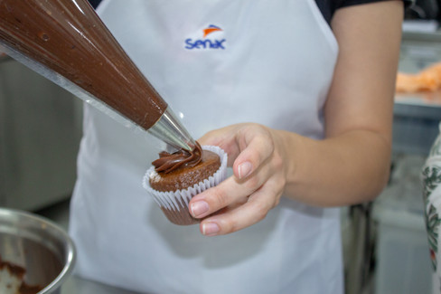 A responsável por ensinar três sabores de cupcake foi a instrutora do Senac Estação Saudade, Melissa da Silva Ciuneck. Para ela, as participantes estavam interessadas e animadas em aprender.